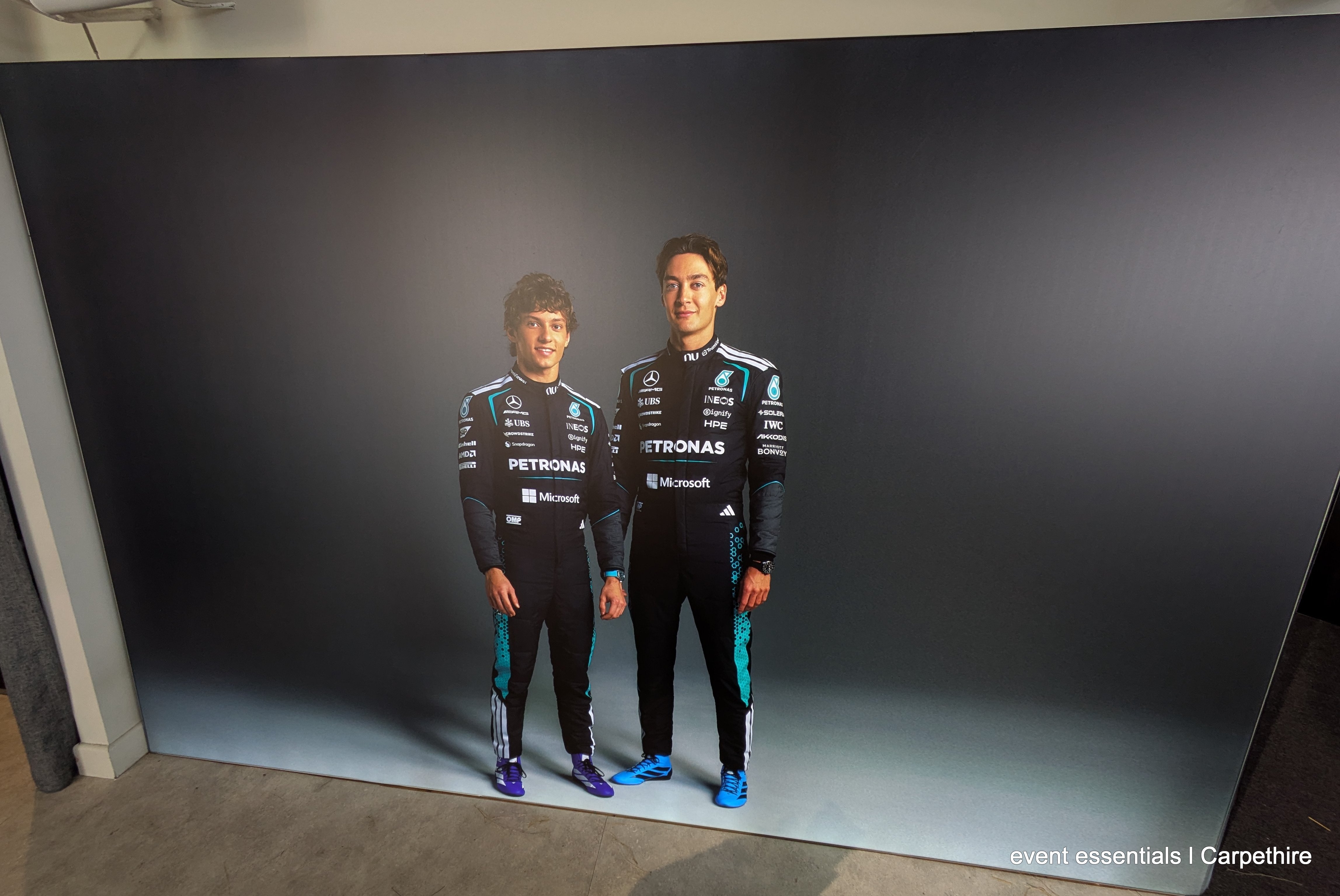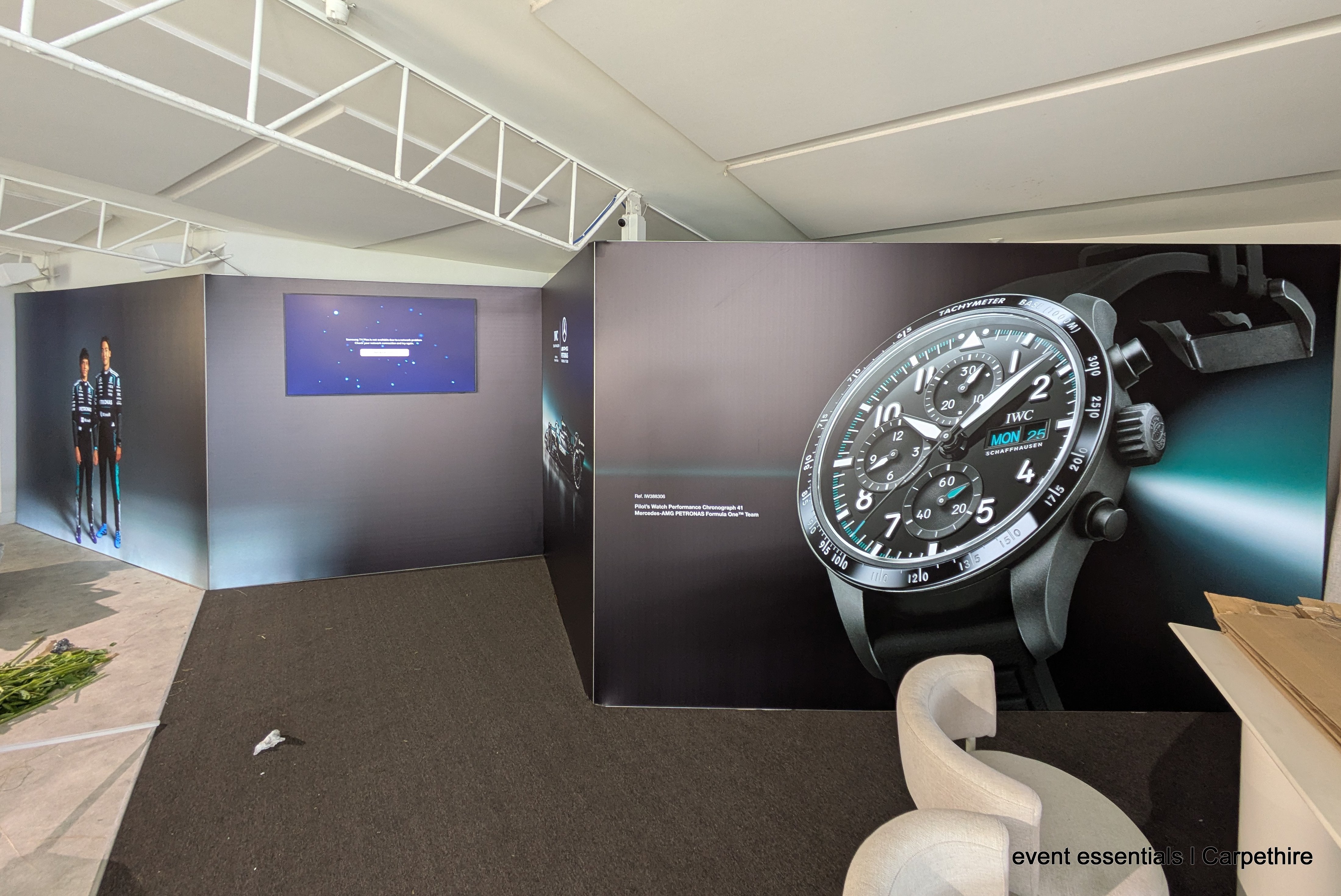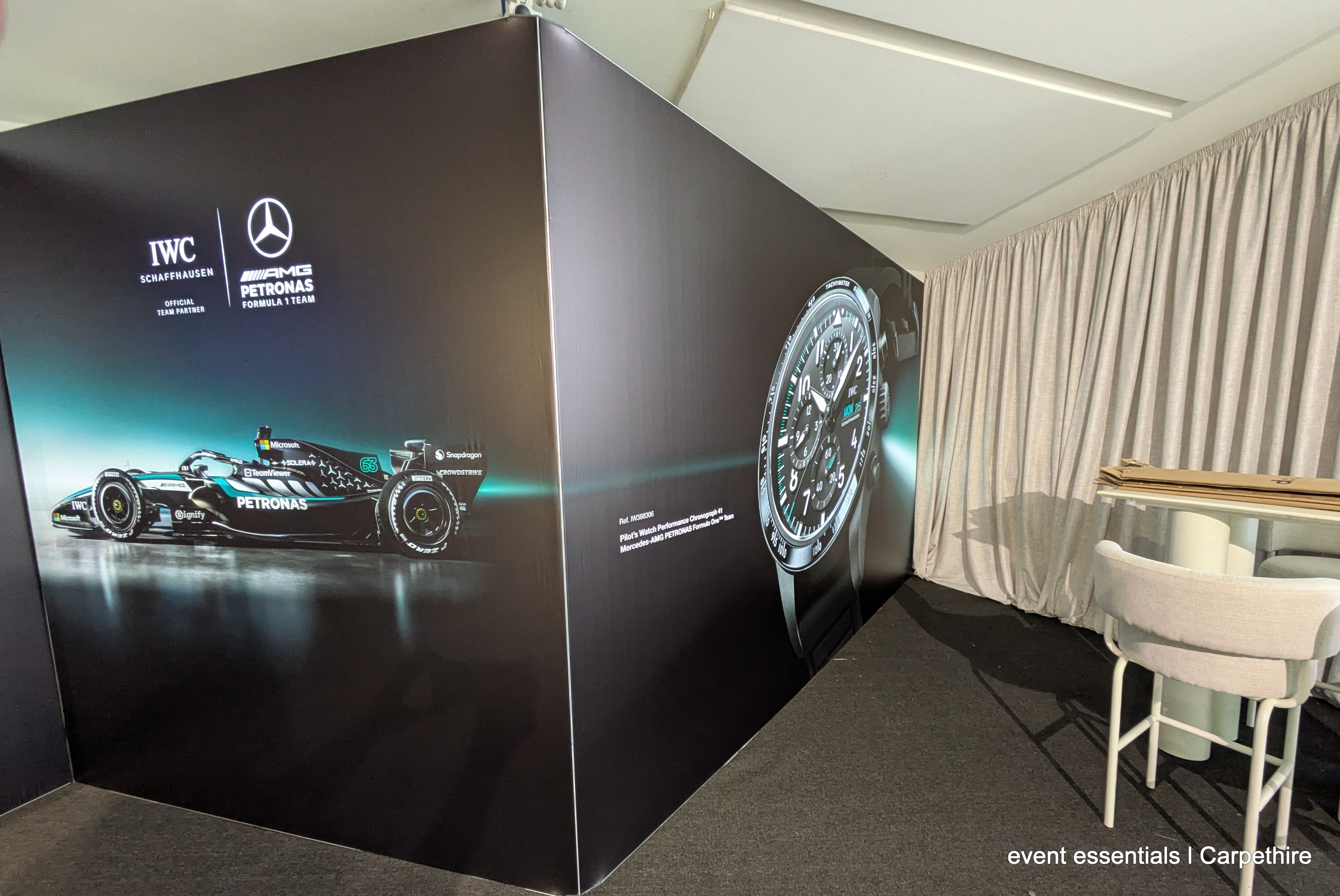 Angles, angles, angles our customer wanted the walling to fit the shape of the room so here's what we did. Four backlit media walls at custom height 2.5m filled the space. To create the angles there was a protactor involved! Our team designed, created drawings and fabricated joiners in house to create the shapes and then guided the artwork designer to make sure the fit of the fabrics was millimetre perfect. And yes, that is a working LED screen mounted to the face of one of the walls with event essentials special mount kit