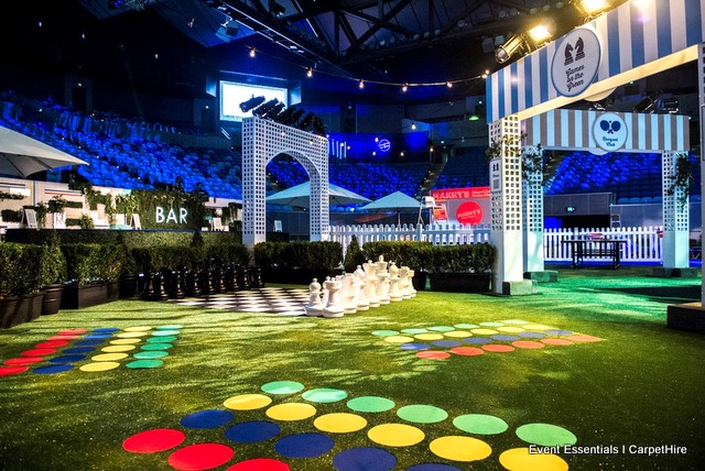 We also provided customised elements which added extra wow factor; twister mats created by CNC cutting two styles of product together which is millimetre perfect to traditional twister mat specifications, and a custom printed carpet chess board.
