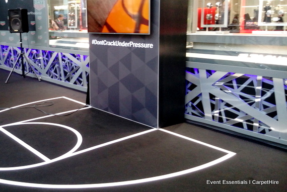 The well known Australian sportsperson was made to feel right at home with a 3-point line themed carpet.